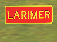 A Pennsylvania Railroad 'plain type' station sign for the Larimer station on the Main Line between Altoona and Pittsburgh. This station was located 93.6 railroad miles west of the Altoona PA station. There is a photo dated 1960 that shows a 'keystone type' station sign on this station. Earlier photos show a 'plain type' sign on this station, like this one. I also made a 'keystone type' sign for here, take your pick. NOTE: this PBR object is a scenery (building) item. It can be used by placing it next to a building. Based on PRR Drawing Number 58755, dated 1906.