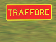 A Pennsylvania Railroad Station sign for the Trafford station on the Main Line between Altoona and Pittsburgh. This station was located 96.9 railroad miles west of the Altoona PA station. NOTE: this PBR object is a scenery (building) item. It can be used by placing it next to a building. Based on PRR Drawing Number 58755, dated 1906.