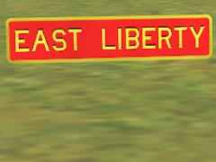 A Pennsylvania Railroad station sign for the East Liberty station on the Main Line between Altoona and Pittsburgh. This station was located 109.3 railroad miles west of the Altoona PA station. NOTE: this PBR object is KIND mesh. It is intended to be used in conjunction with one or more attachment points on another object. The geometric center of this sign's back is where the attachment will occur. Based on PRR Drawing Number 58755, dated 1906.