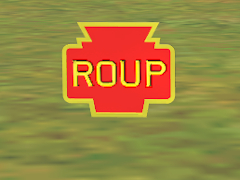 A Pennsylvania Railroad 'keystone type' station sign for the Roup station on the Main Line between Altoona and Pittsburgh. This station was located 110.1 railroad miles west of the Altoona PA station. There is an undated photo that shows a 'keystone type' station sign like this model on this station. Earlier photos show a 'plain type' sign on this station. I also made a 'plain type' sign for here, take your pick. NOTE: this PBR object is KIND mesh. It is intended to be used in conjunction with one or more attachment points on another object. The geometric center of this sign's back is where the attachment will occur. Based on PRR Drawing Number 78160-A, dated 1928.