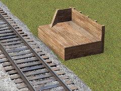 Constructs like these were in place near numerous railroad stations in the U.S. This model is based on a photograph of one such 'catcher' at the Pennsylvania Railroad's Lewistown PA station. When a train was not stopping at the station, but there were one or more bags of mail for that community, the postal workers in the RPO car could drop the bag(s) out the door onto the 'catcher' as the train went by.