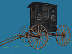 1800s RFD postal delivery wagon. Common sight on American roads back in the day. Original high-detail model by aldemona on Sketchfab. I re-built the various meshes, removing ALOT of un-necessary tri-count, textures re-mapped on various areas.