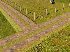 Reskin of original spline by chereck. New high-res texture map and normal. (2048x2048). Feldweg, einspurig. Kein Verkehr. Einbahnstrassen verkehr setzt ein, wenn der Feldweg an eine Strasse angeschlossen wird, die Verkehr produziert. Nur eine Strasse aus einer Richtung anschliessen, sonst gibt es ungewollten Gegenverkehr. Autos fahren sehr langsam (speed 2). Asymetrischer spline. Dieses Asset ist frei zum umtexturieren und Textur ist frei zum Erstellen neuer Assets. Gewerbliche Nutzung ist untersagt. Dirty track, one lane. No traffic. If you connect road with traffic, cars will drive oneway on this track. connect only one road, otherwise cars will drive at unwanted second lane. Cars drive very slow (speed 2). Asymetric spline. Free for repainting, free texture for create new roads. Commercial using is forbidden.