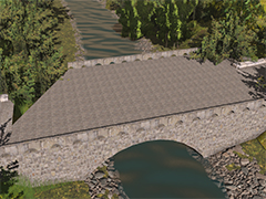 20 meter long stone arched bridge, 30 degree slant, 5m wide, 3.5m high, Dark Grey