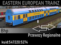Bhp series 2nd class double-decker set owned by Przewozy Regionalne, shortened 2-coach version with straight roof-ends, mid 2010s state and paintscheme. 3d kilanziom, photos PMT, textures PMT, script RBach. TRS2006+