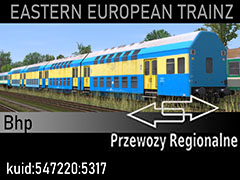 Bhp series 2nd class double-decker set owned by Przewozy Regionalne, full 4-coach version with straight roof-ends, mid 2010s state and paintscheme. 3d kilanziom, photos PMT, textures PMT, script RBach. TRS2006+
