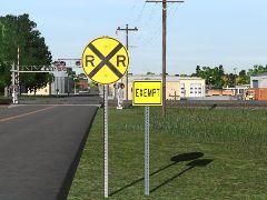 A exempt sign that's white and is on a post. These signs are placed at grade crossing advance warning sign (ie at the R.R. Advance Warning Sign).