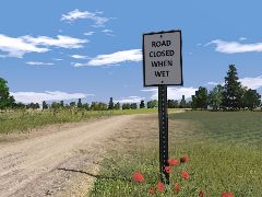 A reskin of one of DES's Roadsigns. This roadsign says 'road closed when wet'. These are placed on public dirt (not gravel) roads to let drivers know the road is closed when its wet.