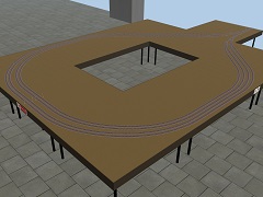 Basic empty particleboards used to turn trains around and send them back to the more interesting modules. Contains a few staging tracks.