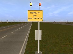 Grade Crossing US ATWS 3 'Advanced Train Warning System'. You will have to use Boats ATLS system to set this up. Set it on the same channel as the crossing it is protecting. Or you could set it up on a seperate channel and have the triggers set out further than the crossing triggers for a truly advance warning. Thanks to SantaFeBuff for pointing this sign out. A special thanks to the following Trainz members for contributing to the working script's of these crossings, MartinVK, Phil Cambell at http://www.worldoftrainz.com, Andi06 at 'www.ajsmith.nildram.co.uk'. Without their help, these crossings would not be animated. Also thank's to the many Trainz members who input praise, help and constructive critisism on the forum which enabled me to refine the crossings to what they are now. Please read the instructions located in the main folder for details on added features.