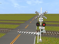 Grade Crossing US gated circa 1950's with swing lights on the gates. Note these crossings will not stop the cars as there is no road connection. They are designed to work in conjuction with Boats ATLS system which can be located at http://www.boatztrainz.co.uk/ A special thanks to the following Trainz members for contributing to the working script's of these crossings, Fwassner, MartinVK, Phil Cambell and Andi06. Without their help, these crossings would not be animated. Also thank's to the many Trainz members who input praise, help and constructive critisism on the forum which enabled me to refine the crossings to what they are now. Please read the instructions located in the main folder for details on added features.