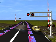 Grade Crossing Overhead US 4 Lanes 4 Tracks 45 degree with protypically animated gates and lights. A special thanks to the following Trainz members for contributing to the working script's of these crossings, Fwassner, MartinVK, Phil Cambell and Andi06. Without their help, these crossings would not be animated. Also thank's to the many Trainz members who input praise, help and constructive critisism on the forum which enabled me to refine the crossings to what they are now. Please read the instructions located in the main folder for details on added features.