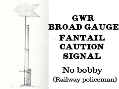 GWR broad gauge caution board signal designed by I K Brunel. Although these were part of the GWR's original time-interval system of working, this signal has been set to work in the same way as later block semaphore signals so as to function in Trainz. Caution boards were used in conjunction with disk-and-crossbar signals. They would be turned to caution for only a short time after a train had passed and then back to proceed about 5 minutes before the disk-and-crossbar was itself set to proceed. In a later time where these signals still survived they were connected into signal box lever frames and no longer required a railway policeman (bobby) to manually operate them.