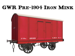 A representational model of a GWR Iron Mink in pre-1904 red livery with grease axleboxes and single sided brakes. This not intended to be a prototypically correct model, but it will look the part in a goods train at normal viewing distances.