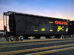 Hawker-Siddeley 4550 Cylindrical Hopper, Black Colour, with Troughed Hatches, lettered for OGHS, which is my fictional railroad. ARN.