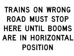 Trains on Wrong Road Must Stop Here Until Booms are in Horizontal Position