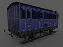 This carriage represents a first class carriage used by the Melbourne and Hobsons Bay United Railway from some point (precise dates unknown due to no records surviving) in the 1850s until government takeover in 1878. This is representative of the blue livery Hobsons Bay stock had based off surviving contemporary colour illustrations, with lining and lettering based off a surviving photo. With thanks to S301 for assistance with scripting, and M. Ritter for lettering.