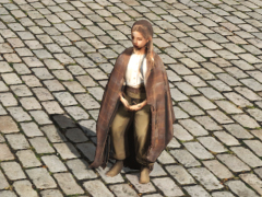 Young 1880s woman standing in plaid blanket. Created in Meshy.ai. High-poly model, over 18,000 polys. 3 LODs. Numerous imperfections.