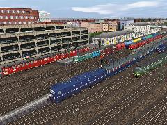 - 6 freight trains with diesel locomotives, serving service or parking tracks to leave and/or pick up wagons,