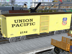 34' Wooden box car. Modifiied to accommodate CMTMSystem3. 20,000 pounds unloaded; 12 ton capacity. General representation of late 19th century box car. Thanks to Curtis Reid for the use of the mesh, to Majekear for adding the NumberIt panels and to Prowler (Todd Hohlenkamp) for the door script and sounds!