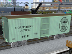 34' Wooden box car.Modifiied to accommodate CMTMSystem3. 20,000 pounds unloaded; 12 ton capacity. General representation of late 19th century box car. Thanks to Curtis Reid for the use of the mesh, to Majekear for adding the NumberIt panels and to Prowler (Todd Hohlenkamp) for the door script and sounds!