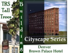 Denver Brown Palace Hotel - This building is part of the Cityscape Series. These buildings should be thought of and used similarly to a backdrop. They are basically a box wrapped in an image and look best at a distance, as in a city skyline or behind other more detailed buildings to provide depth in a Cityscape. Some of the models have no bottom, they lack street level detail.