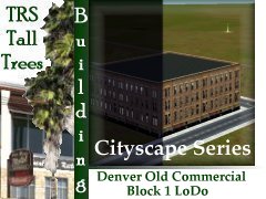 Denver Commercial Block 1 in the Lodo - Lower Downtown - This building is part of the Cityscape Series. These buildings should be thought of and used similarly to a backdrop. They are basically a box wrapped in an image and look best at a distance, as in a city skyline or behind other more detailed buildings to provide depth in a Cityscape. Some of the models have no bottom, they lack street level detail.