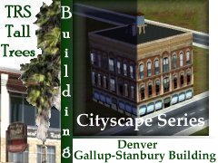 Gallup Stanbury Building in Denver - This building is part of the Cityscape Series. These buildings should be thought of and used similarly to a backdrop. They are basically a box wrapped in an image and look best at a distance, as in a city skyline or behind other more detailed buildings to provide depth in a Cityscape. Some of the models have no bottom, they lack street level detail.