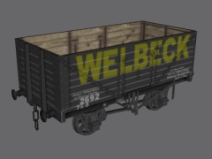 A Standard 1923 RCH 7 plank wagon (16ft 6ins x 8ft 0ins x 4ft 4ins) with side, end and bottom doors. Welbeck colliery near Warsop, Notts started production in the 1920s and supplied house, steam and manufacturing coal. This wagon was built by W & H Davies and had an unusual livery of black with unshaded yellow lettering.