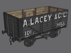 A 7 Plank wagon (16ft 6ins x 8ft 0ins x 4ft 4ins) built by W&H Davies about 1922/23 with side, end and bottom doors. This merchant probably supplied both the industrial and domestic markets together with the fishing fleets at Hull, obtaining supplies from Yorkshire, Derbyshire and Nottinghamshire.