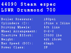 LSWR Drummond 700 Class Engine Spec. Created using the universal engine spec spreadsheet by Bill Fock.