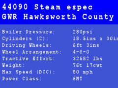GWR Hawksworth County 4-6-0 Engine Spec. Created using the universal engine spec spreadsheet by Bill Fock.