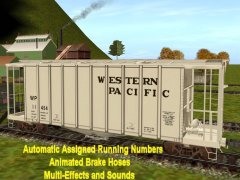 Chicken Neck Foundry presents a 2-bay airslide hopper. Looking more like a boxcar than a hopper, airslides where first introduced in 1954 by General American Transporation Corporation like this one. They feature a finely perforated interior fabric lining. The powdered or granulated load of usually flour or sugar is effectively liquified as it is forced out of the car under high air pressure via hose connections. It is also used to carry grains and other fine products. This early C111 39 ft model hopper's top hatches open and close with load and unload sounds and additional dust clouds at facilities like woodchips and with automatic assigned running numbers (thanks eldavo) and animated air brake hoses (thanks Wulf_9).. While usually dust free, this car also bellows clouds of it from under the bays as the hopper unloads. Thanks to Pencil42, Fitz505 and PhilC (his handles and couplers), whose assistance on prior type hoppers and cars made this one possible. Car has brake cylinder and reservoir, and couplers too. Created from the rails up with gmax Trainz Asset Creation Studio. Loads LARS and Auran products: barley, cement, corn, flour, grain hp, lose gravel, hops, limestone aggregate, malt, oats, peas,plaster, granular plastic, quartz sand, rice, sand, sand and gravel, soda ash, soya beans, sugar, taconite pellets, wheat, or woodchips. Note: Some are not appropriate for this type car. Employees roller bearing trucks by CloakedGhost275.