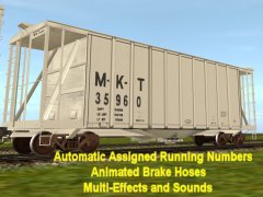 Chicken Neck Foundry presents a 2-bay airslide hopper. Looking more like a boxcar than a hopper, airslides where first introduced in 1954 by General American Transporation Corporation like this one. They feature a finely perforated interior fabric lining. The powdered or granulated load of usually flour or sugar is effectively liquified as it is forced out of the car under high air pressure via hose connections. It is also used to carry grains and other fine products. This early C111 39 ft model hopper's top hatches open and close with load and unload sounds and additional dust clouds at facilities like woodchips and with automatic assigned running numbers (thanks eldavo) and animated air brake hoses (thanks Wulf_9).. While usually dust free, this car also bellows clouds of it from under the bays as the hopper unloads. Thanks to Pencil42, Fitz505 and PhilC (his handles and couplers), whose assistance on prior type hoppers and cars made this one possible. Car has brake cylinder and reservoir, and couplers too. Created from the rails up with gmax Trainz Asset Creation Studio. Loads LARS and Auran products: barley, cement, corn, flour, grain hp, lose gravel, hops, limestone aggregate, malt, oats, peas,plaster, granular plastic, quartz sand, rice, sand, sand and gravel, soda ash, soya beans, sugar, taconite pellets, wheat, or woodchips. Note: Some are not appropriate for this type car. Employees roller bearing trucks by CloakedGhost275.