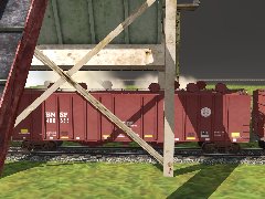 Chicken Neck Foundry presents a 2-bay airslide hopper. Looking more like a boxcar than a hopper, airslides where first introduced in 1954 by General American Transporation Corporation. They feature a finely perforated interior fabric lining. The powdered or granulated load of usually flour or sugar is effectively liquified as it is forced out of the car under high air pressure via hose connections. It is also used to carry grains and other fine products. This later 48 ft model hopper's top hatches open and close with load and unload sounds and additional dust clouds at facilities like woodchips and with automatic assigned running numbers (thanks eldavo) and animated air brake hoses (thanks Wulf_9).. While usually dust free, this car also bellows clouds of it from under the bays as the hopper unloads. Thanks to Pencil42, Fitz505 and PhilC (his handles and couplers), whose assistance on prior type hoppers and cars made this one possible. Car has brake cylinder and reservoir, and couplers too. Created from the rails up with gmax Trainz Asset Creation Studio. Loads LARS and Auran products: barley, cement, corn, flour, grain hp, lose gravel, hops, limestone aggregate, malt, oats, peas, plaster, granular plastic, quartz sand, rice, sand, sand and gravel, soda ash, soya beans, sugar, taconite pellets, wheat, or woodchips. Note: Some are not appropriate for this type car. Employees roller bearing trucks by CloakedGhost275.