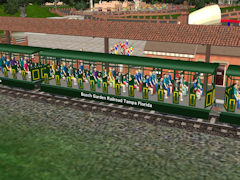 Uses New Modern Passengers with adults and kids. This ia a traincar for your Amusement or Theme Park. It comes in three colors, Red, Green and Yellow. NOTE! The letterings text, color, and size can be changed by manipulating the values in the effects section of the config files mesh table. Just open the config file and change the name to whatever you mant it to be. It is passenger enabled and the cars will hold 48 passengers.