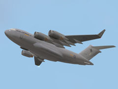 A Boeing C-17 Globmaster transport aircraft of the RAAF. It operates on invisible track and will load passengers, general goods, tanks or jeeps, at a suitable landing area.