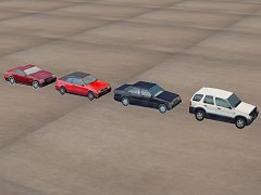 A spline of four cars for parallel parking at the kerbside. The cars include a VW Golf, a Ford Escape, and Mercedes MB 180e and MB Slk.