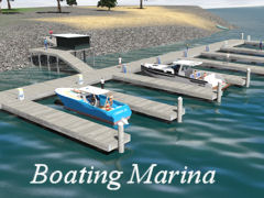 A small boat marina, it has attached track so you can drive boats into the docks one to four, the remaining docks are empty so you can place static boats. It is not industry interactive.