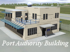 A Port Authority administration building. In some of my scenery models I have included attached figures to make them more interesting. If you do not want the figures to show, remove the effects container in the config file.