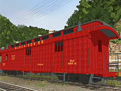 Murchison Railroad (MRR) non-interactive 36-inch narrowgauge baggage/mail car. Default carriage numbers/text can be over-written in the 'Name:' field of the Properties dialog box in Surveyor.