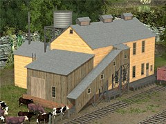 A re-build of Bendorsey's trackside meat packing plant. I have fixed various mesh defects, significantly reduced the poly-count, implemented LOD and revised the textures using normal-mapped materials. The building can also now be height-adjusted and tilted to accomodate a slight track gradient.
