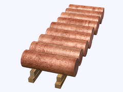 A skid-mounted, 2m-long row of 9 cleaned copper billets.