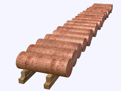 A skid-mounted, 4m-long row of 19 cleaned copper billets.