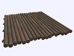 A row of 19 unbound cast copper billets, each 200mm diameter x 4m long, mounted on oak wood skids. LOD meshes contain 2560, 736, 432 triangles and 1 material. Created in 3DS Max 2012. Requested by Michael Sutton (sirgibby).