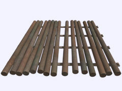 A row of 15 unbound cast copper billets, each 200mm diameter x 4m long, mounted loosely on oak wood skids. LOD meshes contain 2048, 608, 368 triangles and 1 material. Created in 3DS Max 2012. Requested by Michael Sutton (sirgibby).
