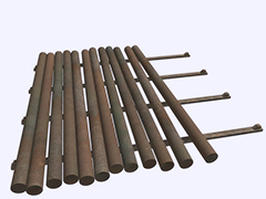 A row of 12 unbound cast copper billets, each 200mm diameter x 4m long, mounted loosely on oak wood skids. LOD meshes contain 1664, 512, 320 triangles and 1 material. Created in 3DS Max 2012. Requested by Michael Sutton (sirgibby).