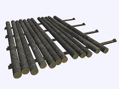 A row of 12 cast brass billets, each 4m long, 200mm diameter, spread loosely on oak wood skids. LOD meshes contain 896, 512, 296 triangles and 1 material. Created in 3DS Max 2012. Requested by Michael Sutton (sirgibby).