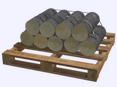 A pile of 9 acid-washed brass billets, bound with metal straps on a pine wood pallet. LOD meshes contain 1062, 476 triangles and 1 material. Created in 3DS Max 2012. Requested by Michael Sutton (sirgibby).