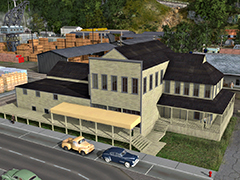 Yosemite Valley Railroad's lumber company office was at Merced Falls, California. This is a reconstruction of bendorsey's model (kuid2 210518 8969 1) to fix several mesh issues, improve visual appearance, reduce the poly/texture load and add LOD.